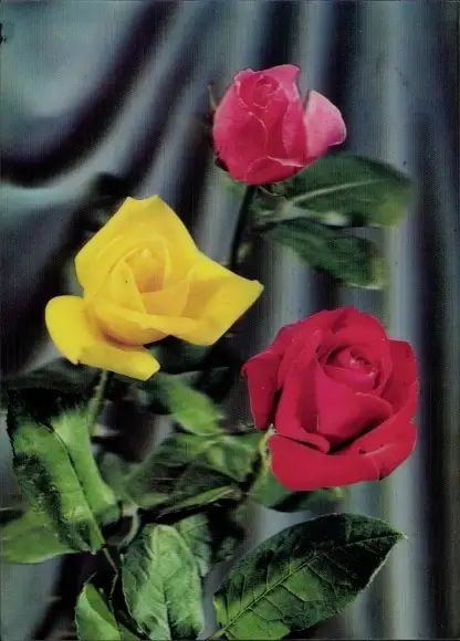 3D Ak Verschiedenfarbige Rosen, Blüten