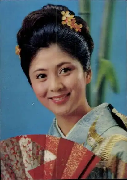 3D Ak Zwinkernde asiatische Frau, Fächer