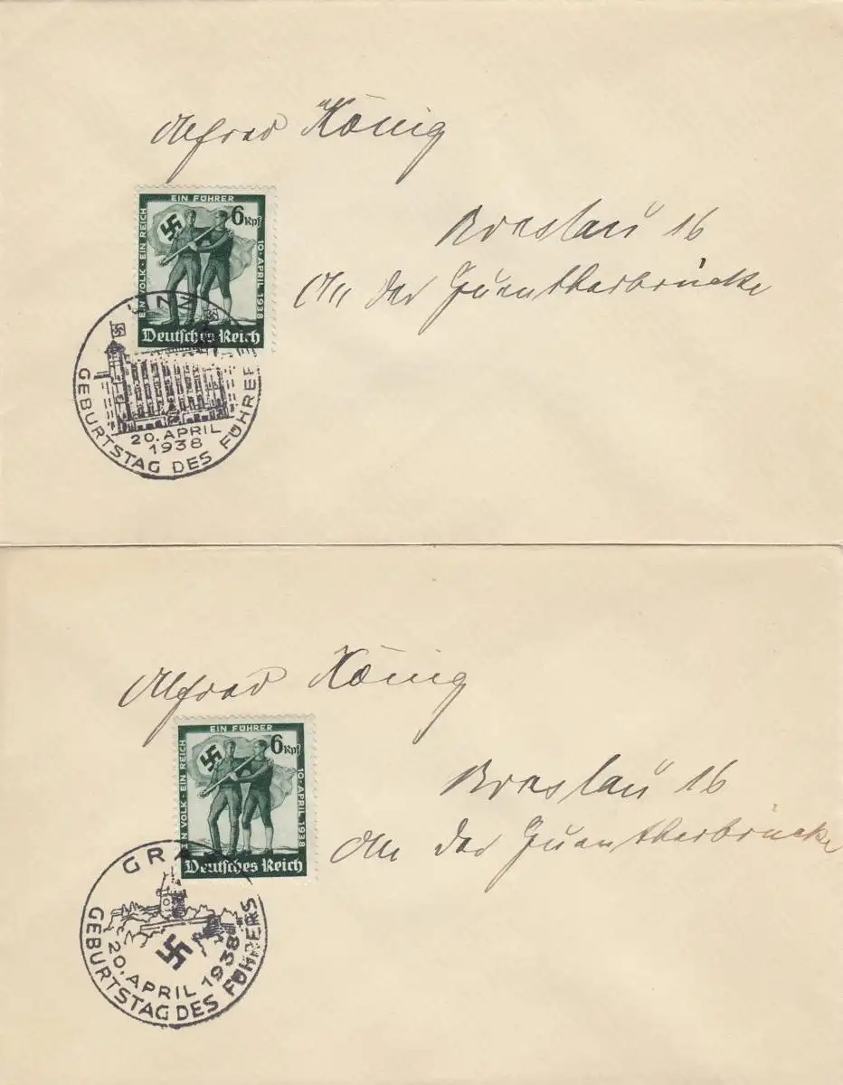 3x Briefe Führergeburtstag 1938, Braunau, Linz, Graz