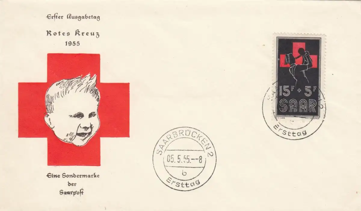 3x FDC Rotes Kreuz 1955/56, Saarbrücken
