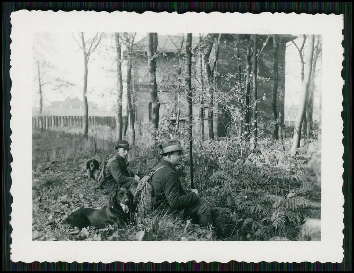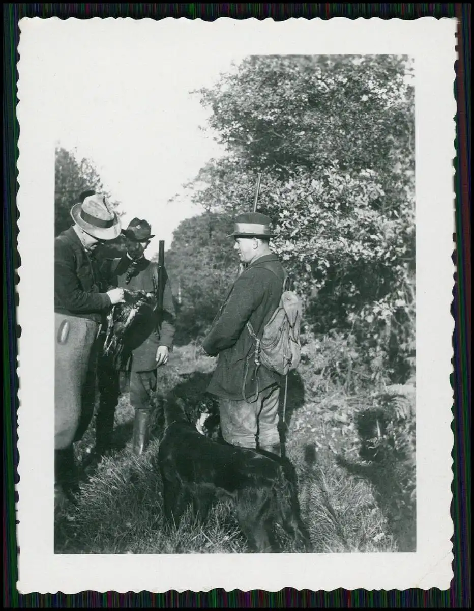 3x Foto 3 Jäger mit Jagdhund Jagdflinte Rucksack auf der Jagd