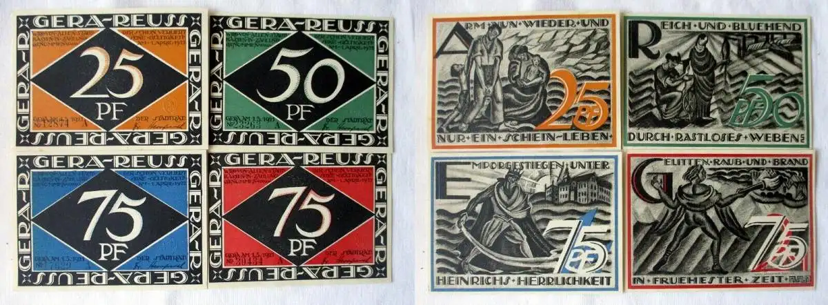 4 Banknoten Notgeld Gera Reuss 1.5.1921 kassenfrisch (164164)