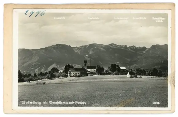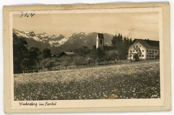 4 Glas Negative Wackersberg in Oberbayern, Kirche, Landschaft, Totalansicht