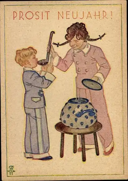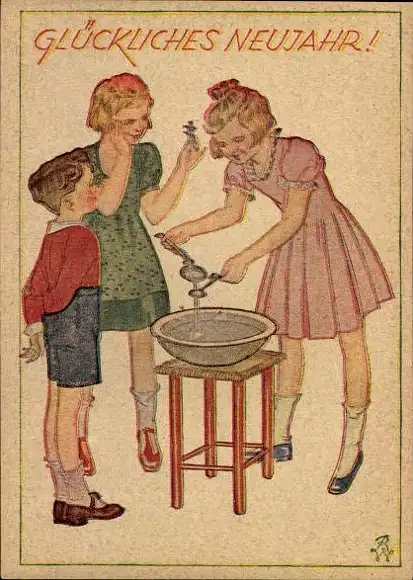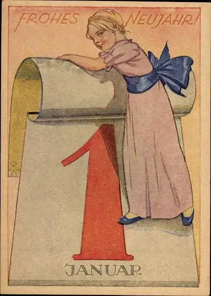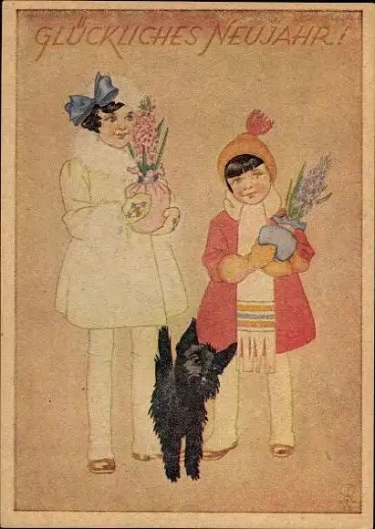 4 alte Ansichten Glückwunsch Neujahr, diverse Bilder