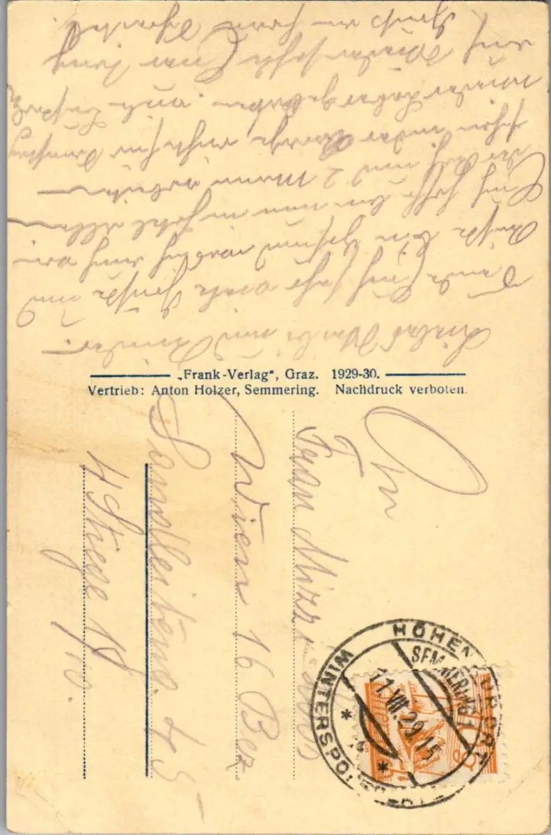 40307 - Niederösterreich - Semmering , Weinzettelwand - gelaufen 1929