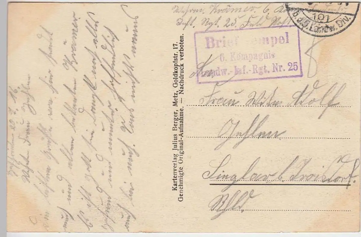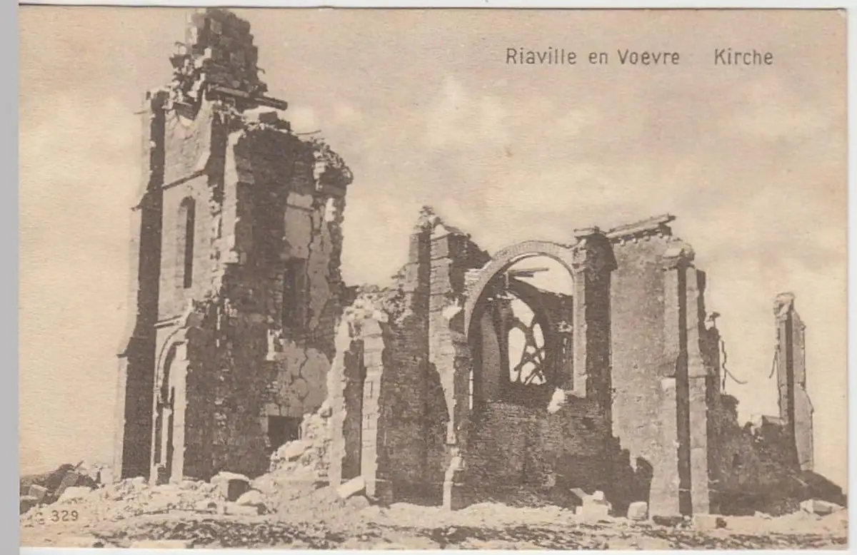 - (40357) Ansichtskarte, postcard, PPC - 1.WK Riaville en Voevre, zerstörte Kirche, Feldpost 1916