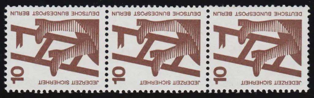 403d Unfall 10 Pf blaue Nr., 3er-Streifen + Nr. **