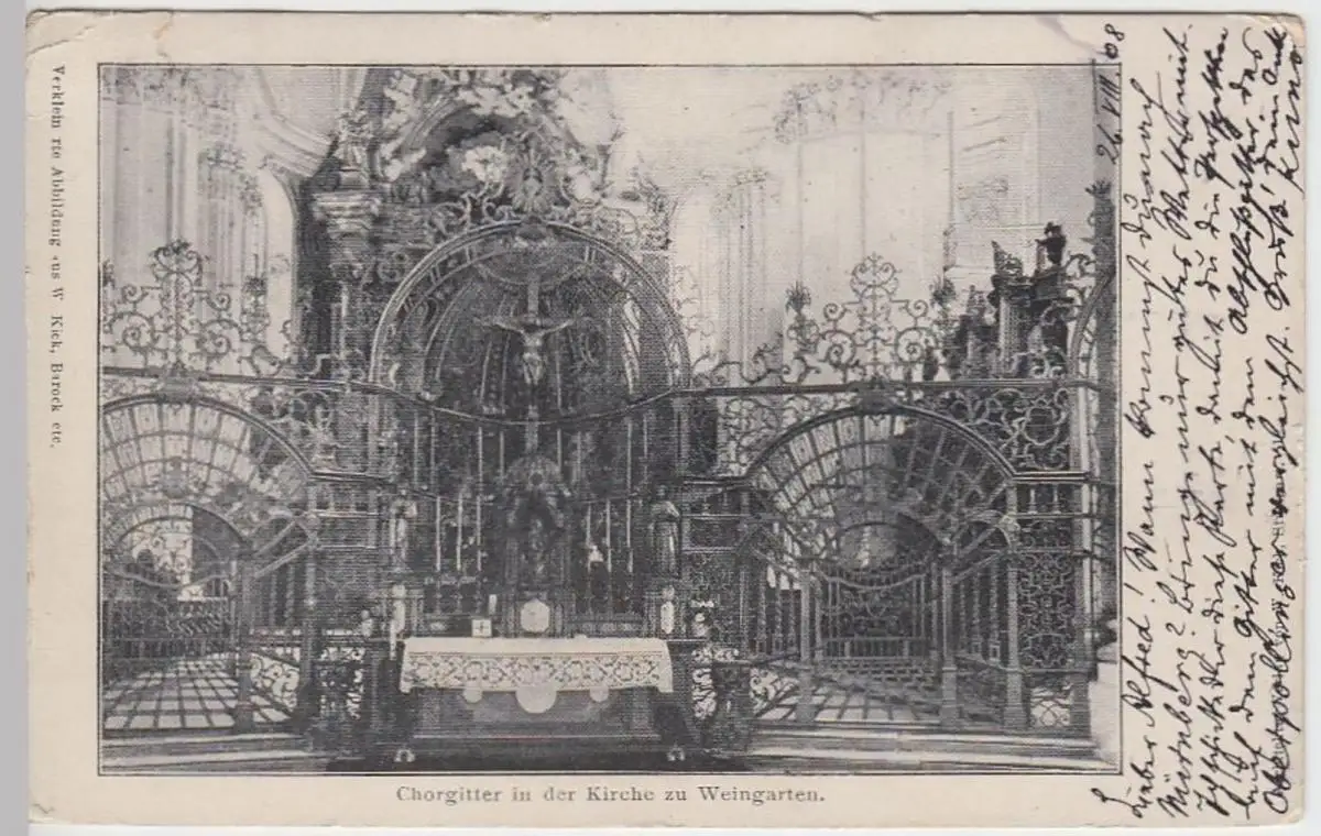 - (40717) Ansichtskarte, postcard, PPC - Weingarten, Chorgitter i.d. Kirche, 1908