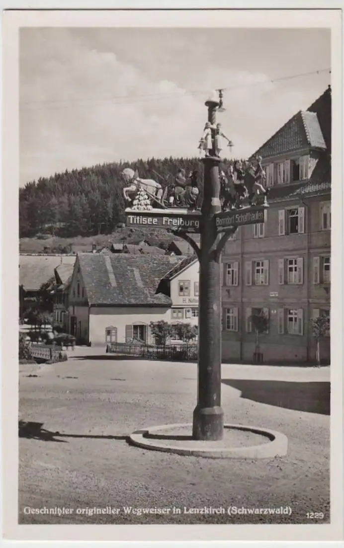 - (40840) Foto Ansichtskarte, postcard, PPC - Lenzkirch, geschnitzter Wegweiser