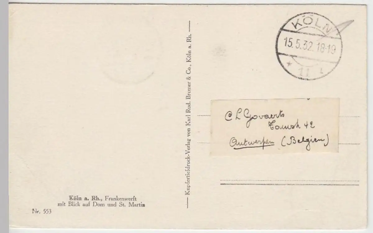 - (40918) Ansichtskarte, postcard, PPC - Köln, Frankenwerft, 1932