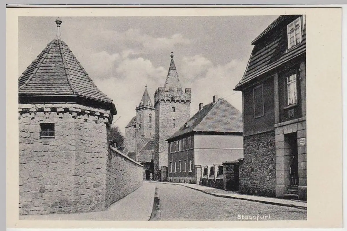 (41020) AK Stassfurt, Straßenpartie am Eulenturm 1937
