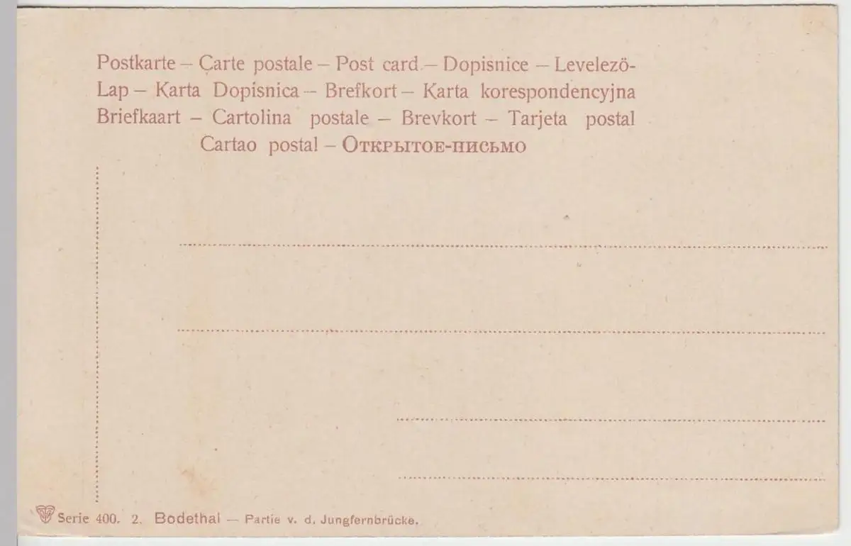 - (41716) Ansichtskarte, postcard, PPC - Bodetal, Partie a.d. Jungfernbrücke, vor 1905