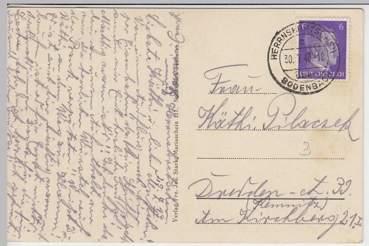 - (43289) Ansichtskarte, postcard, PPC - Böhm. Schweiz, Gabrielensteig 1943