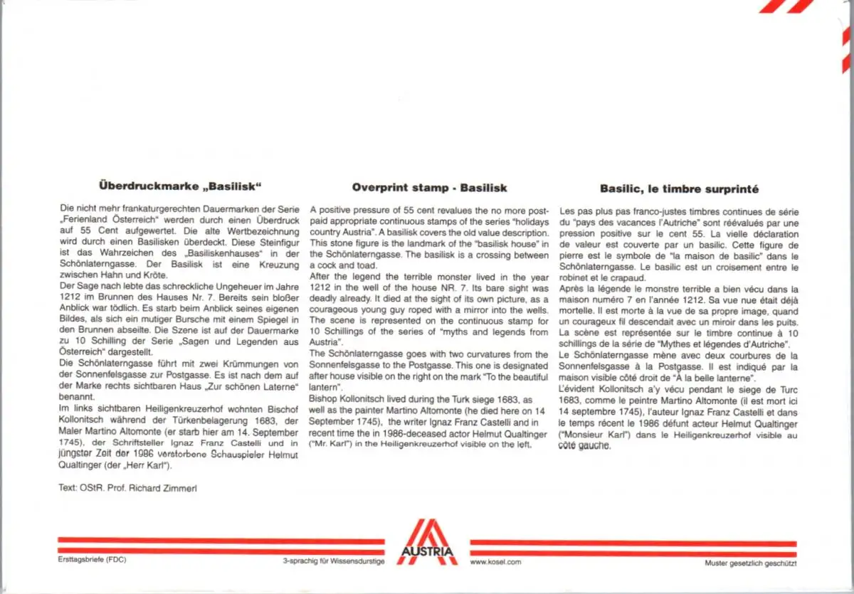 44592 - Österreich - FDC , Ersttag , Basilisk - nicht gelaufen 2004