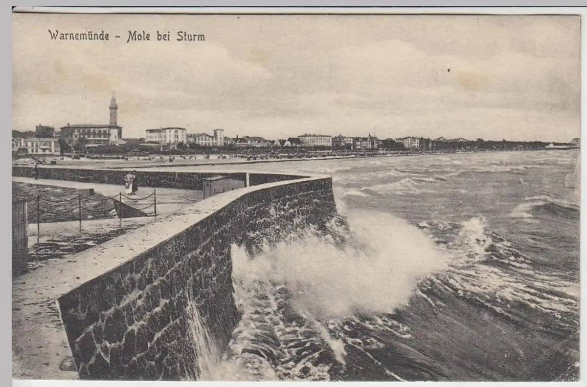 - (45235) Ansichtskarte, postcard, PPC - Warnemünde, Mole bei Sturm, 1925