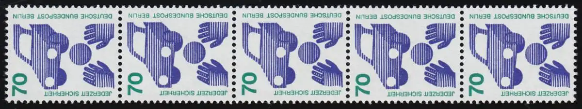 453b Unfall 70 Pf rote Nr., 5er-Streifen + Nr. **