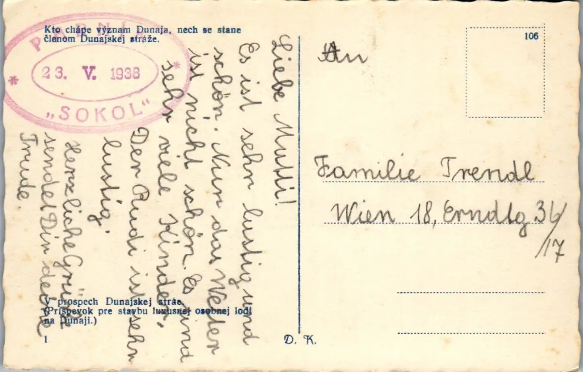 46100 - Slowakei - Bratislava , Dampfer Sokol - gelaufen 1938