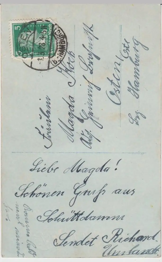 Diese Postkarte wurde von meinem Opa geschrieben und versendet. Ein Stück Erinnerung von fast 100 Jahren
