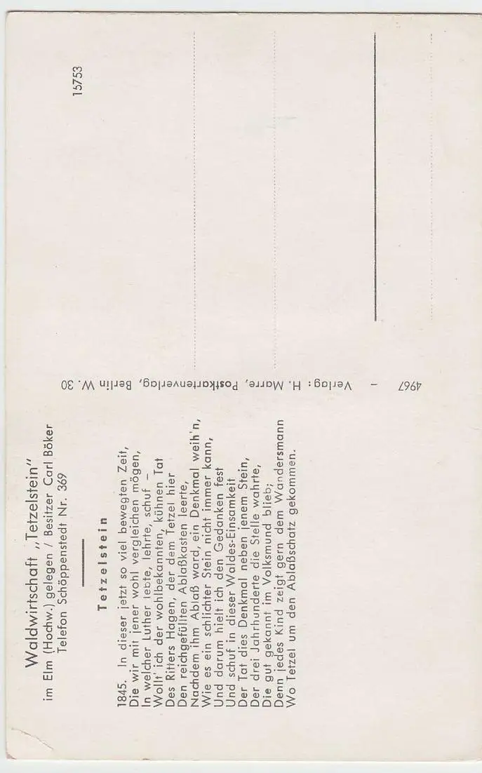 - (46452) Ansichtskarte, postcard, PPC - Tetzelstein-Denkmal a.d. Elm, vor 1945