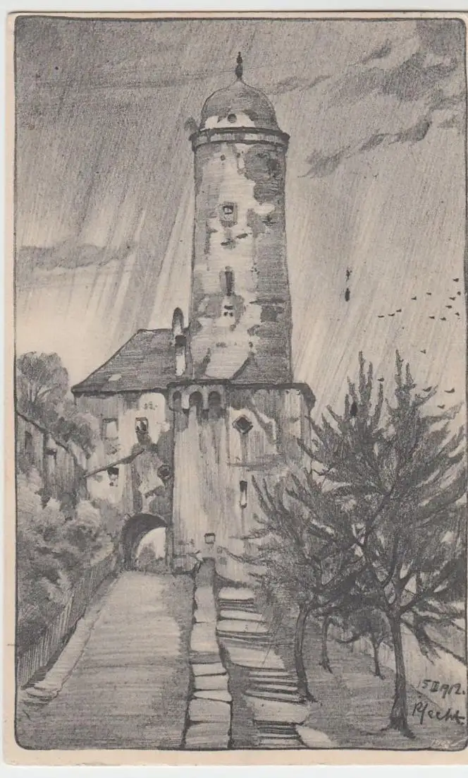 - (46587) Künstler Ansichtskarte, postcard, PPC - Paul Hecht: Bautzen, Neutor, Feldpost 1915