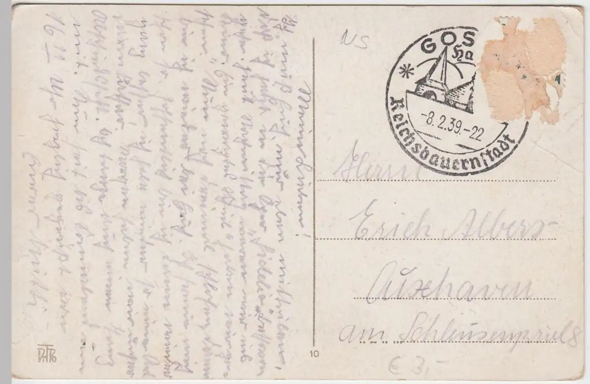- (47010) Ansichtskarte, postcard, PPC - Goslar, Jägerdenkmal 1939
