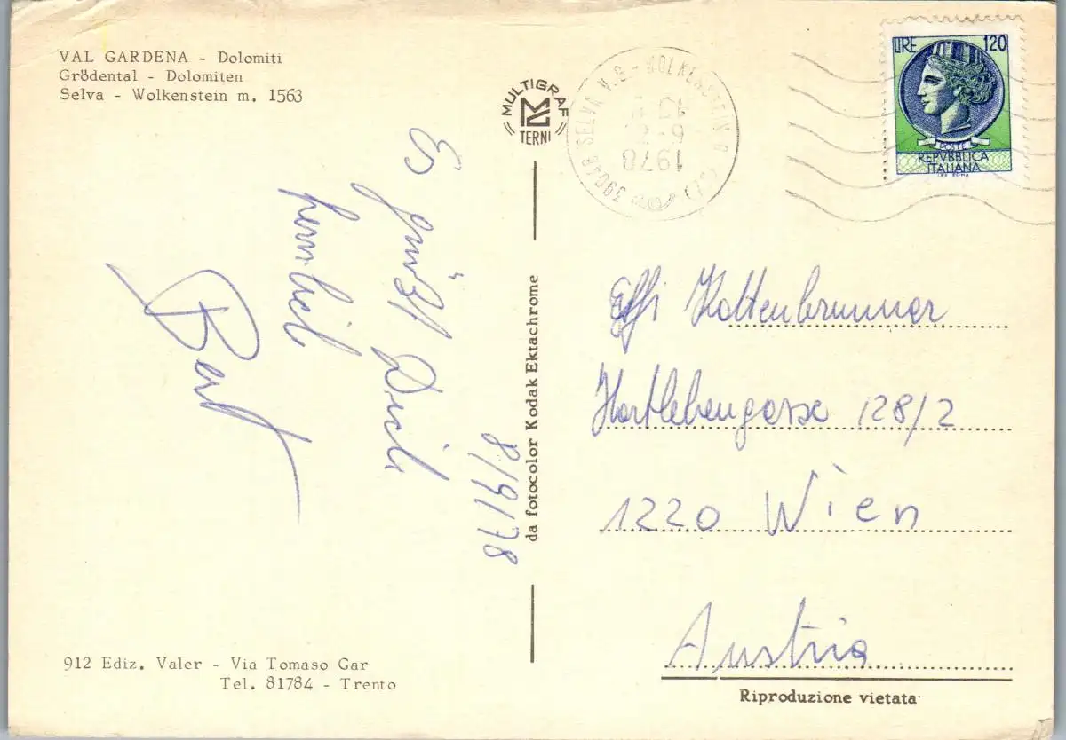 48020 - Italien - Selva , Wolkenstein , Val Gardena , Grödental - gelaufen 1978