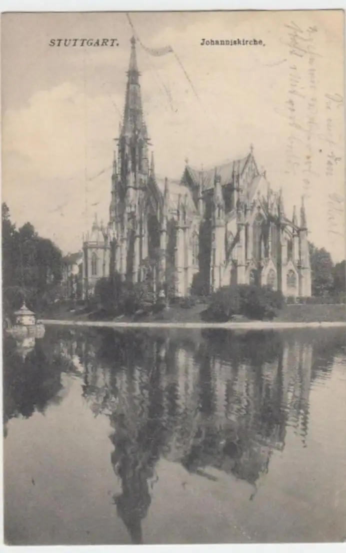 - (4845) Ansichtskarte, postcard, PPC - Stuttgart, Johanniskirche 1909