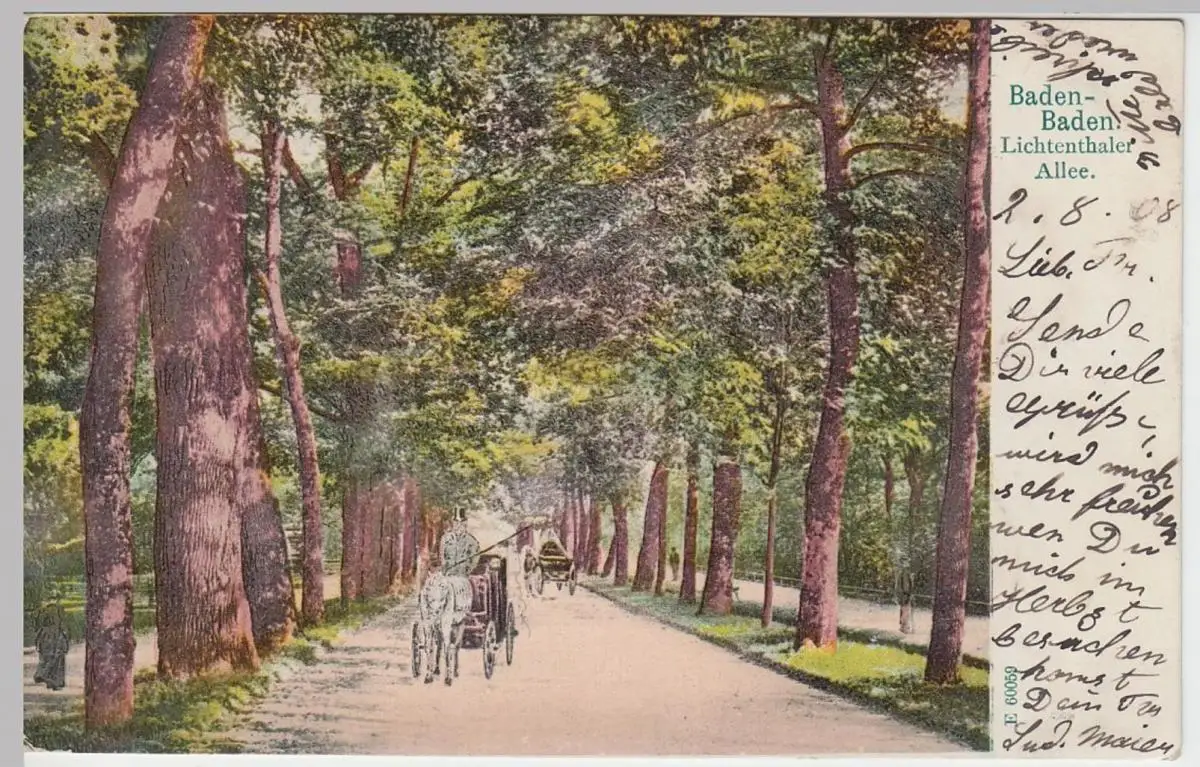 - (48841) Ansichtskarte, postcard, PPC - Baden-Baden, Lichtenthaler Allee, 1908