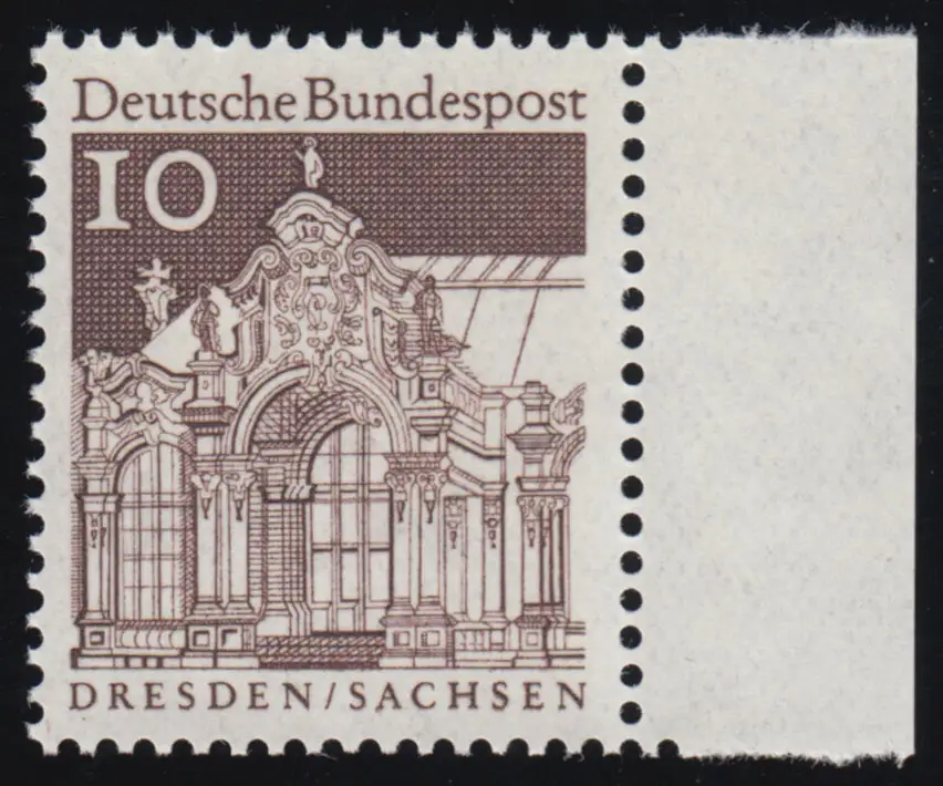 490 Bauwerke groß 10 Pf Seitenrand re. ** postfrisch