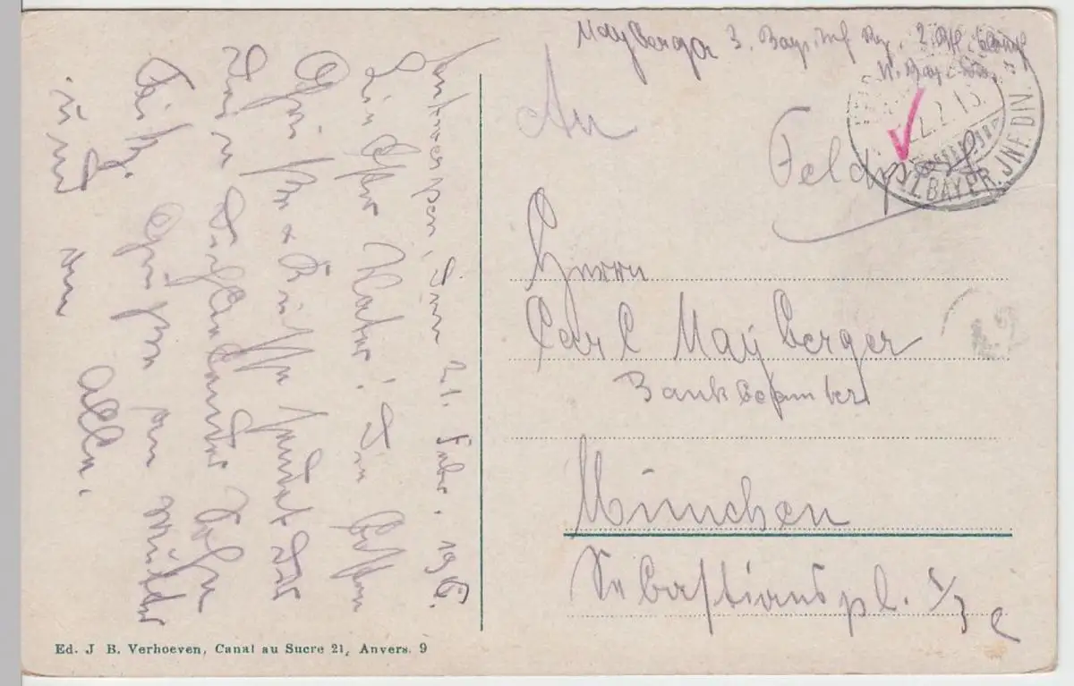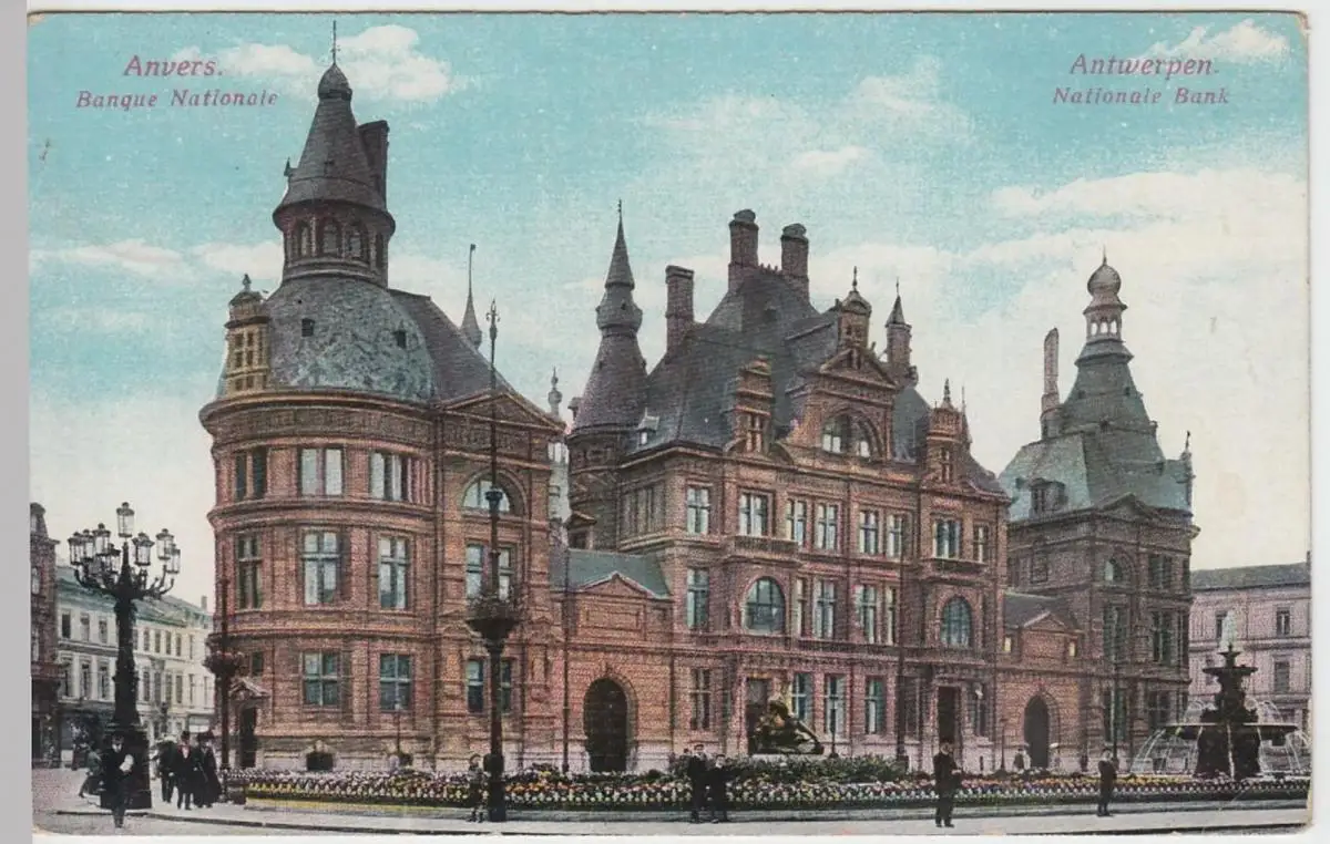 - (49381) Ansichtskarte, postcard, PPC - Anvers, Antwerpen, Banque Nationale, Feldpost 1916