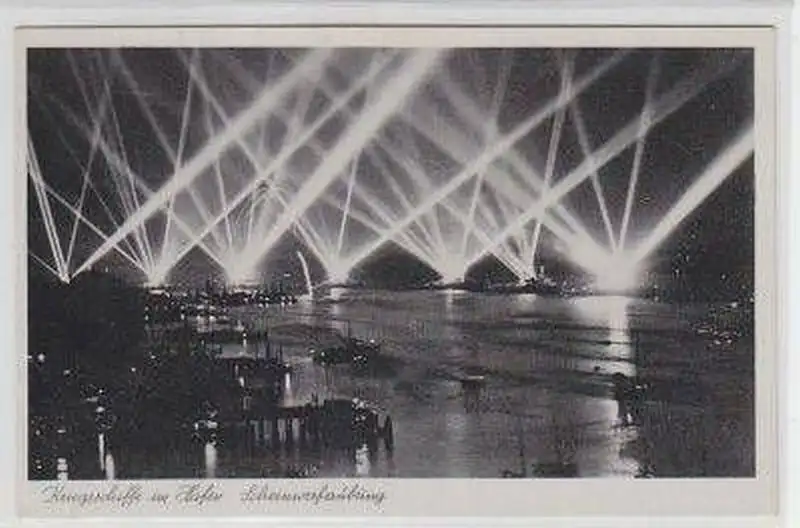 49720 Ak Kriegsschiffe im Hafen Scheinwerferübung 1940