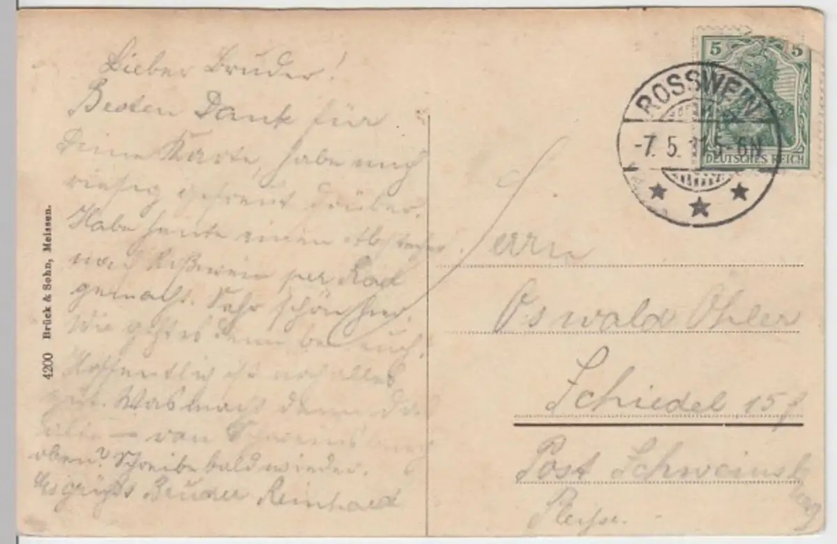 Diese Postkarte wurde von meinem Opa geschrieben und versendet. Ein Stück Erinnerung von fast 100 Jahren
