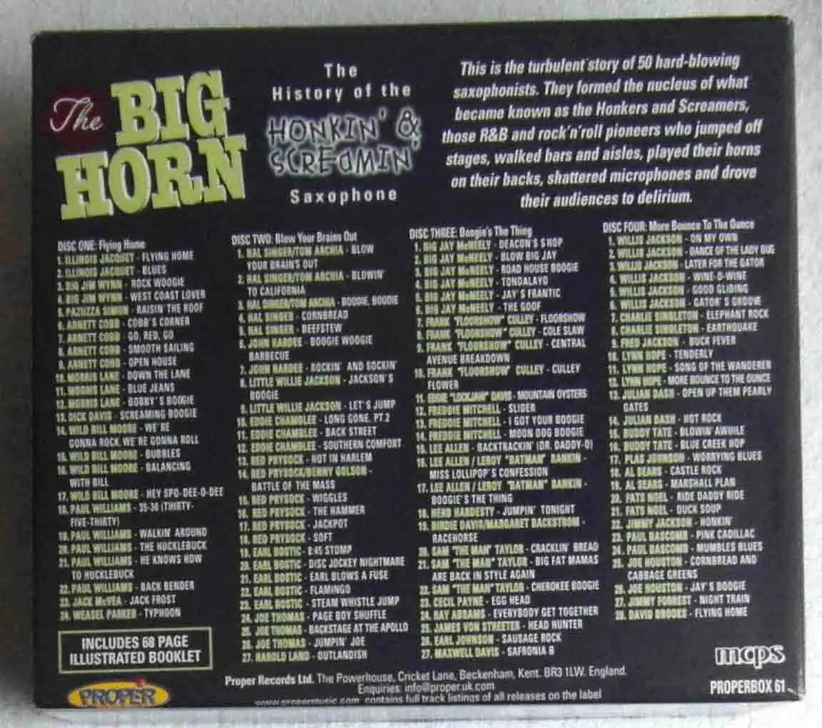 4CD Box The Big Horn . History of Hookin & Screamin Saxophone - (Proper)