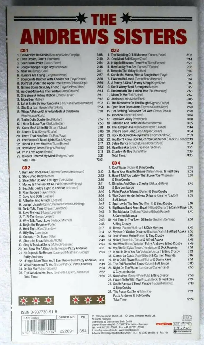 4CD Set Andrews Sisters: Rum and Coca Cola (Membran) 2005