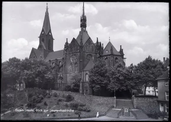 5 Glas Negative Steele Essen im Ruhrgebiet, Torbogen, Brunnen, Kirche