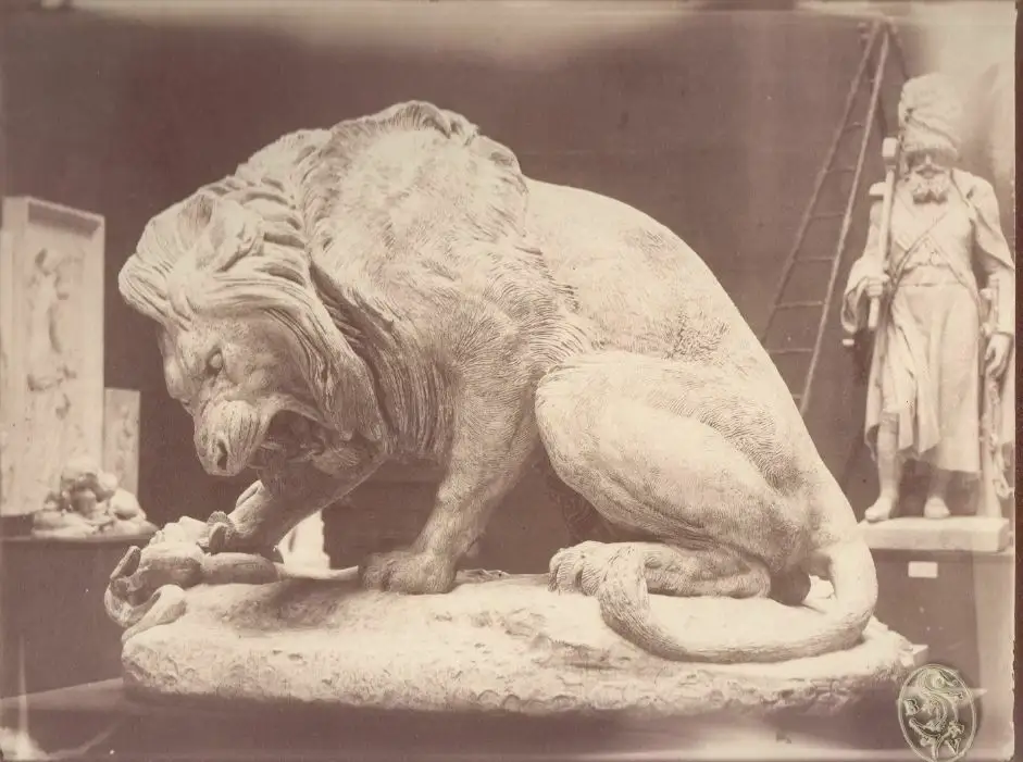 Bemerkungen: 1. Le Petit Trianon. [Lustschloss, das im Auftrag von Ludwig XV. von Ange-Jacques Gabriel für die königliche Mätresse Madame de Pompadour errichtet wurde und später in den Besitz von Marie Antoinette kam] X. Phot [ca. 1890]. 25 x 33 cm. (Blattgr.); 12 x 18, 8 cm. (Bildgr.). - 2. [weibliche Figur der französischen Republik mit Löwen]. [ca. 1890]. 33 x 25 cm. (Blattgr.); 27 x 21 cm. (Bildgr.). - 3. [Skulptur eines Löwen]. [ca. 1890]. 25 x 33 cm. (Blattgr.); 19 x 26 cm. (Bildgr.). - 4. Beguines. Charmeuse. 824 A. [ca. 1890]. 33 x 25 cm. (Blattgr.); 27 x 22 cm. (Bildgr.). - 5. Musée du Luxembourg. - Pan et Ours, par E. Frémiet. X Phot.. [ca. 1890].