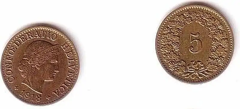 5 Rappen Messing Münze Schweiz 1918