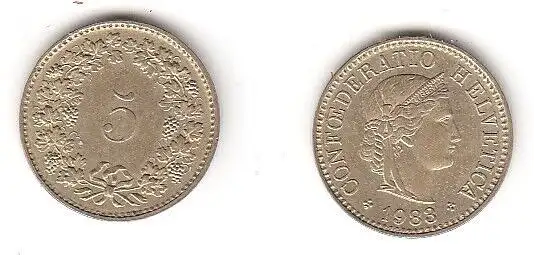 5 Rappen Messing Münze Schweiz 1983 (114112)