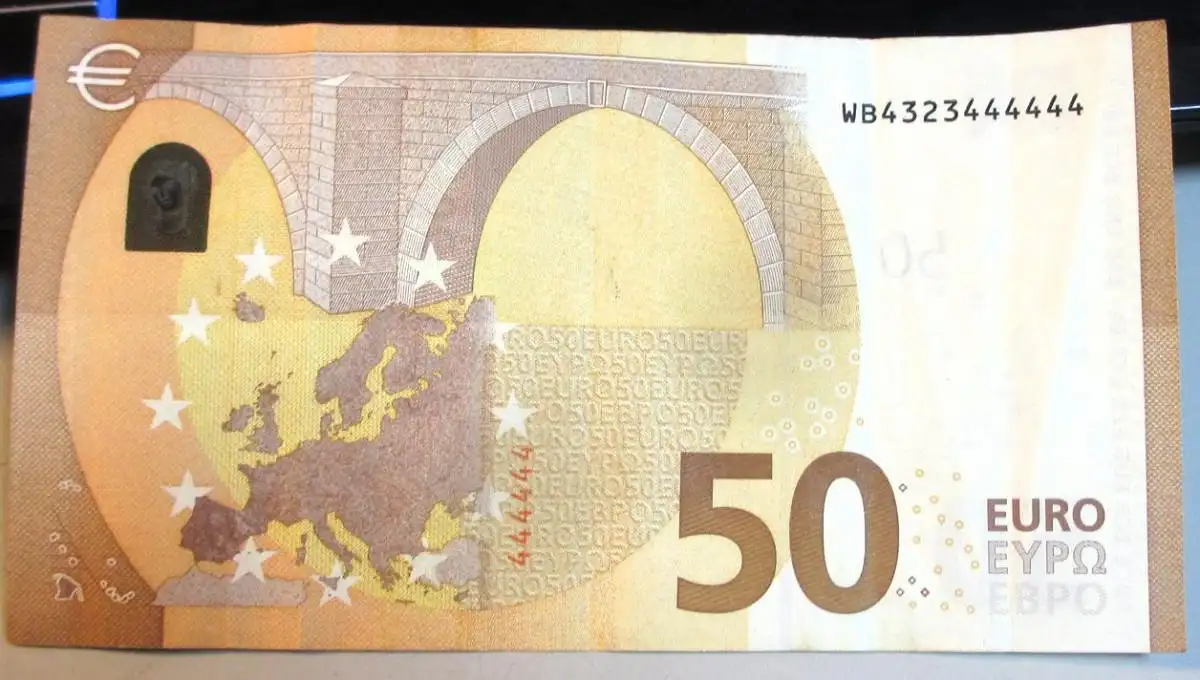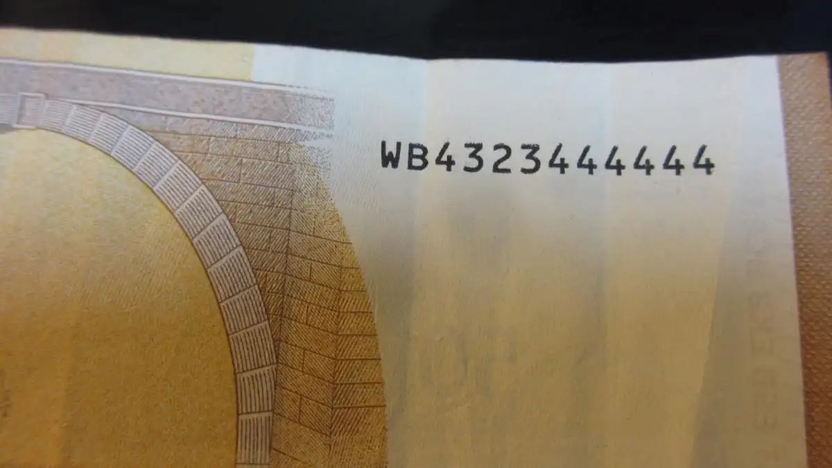 Der Geldschein ging durch einige Hände, das ist zu sehen. Senkrechte Knicke. Ecken jedoch alle ok! Im Ganzen also noch ganz schön, denn wir haben oft wesentlich schlimmere Scheine im Portemonnaie.