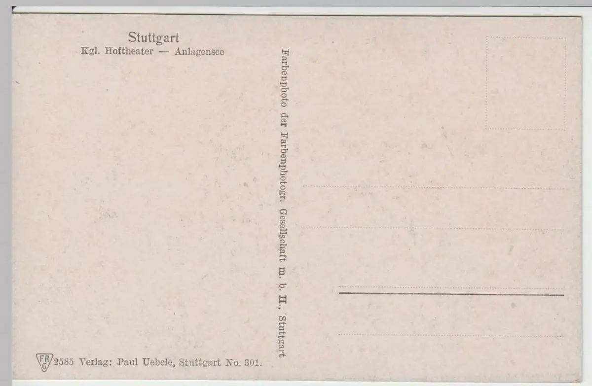 - (50721) Ansichtskarte, postcard, PPC - Stuttgart, Kgl. Hoftheater, Anlagensee, vor 1945