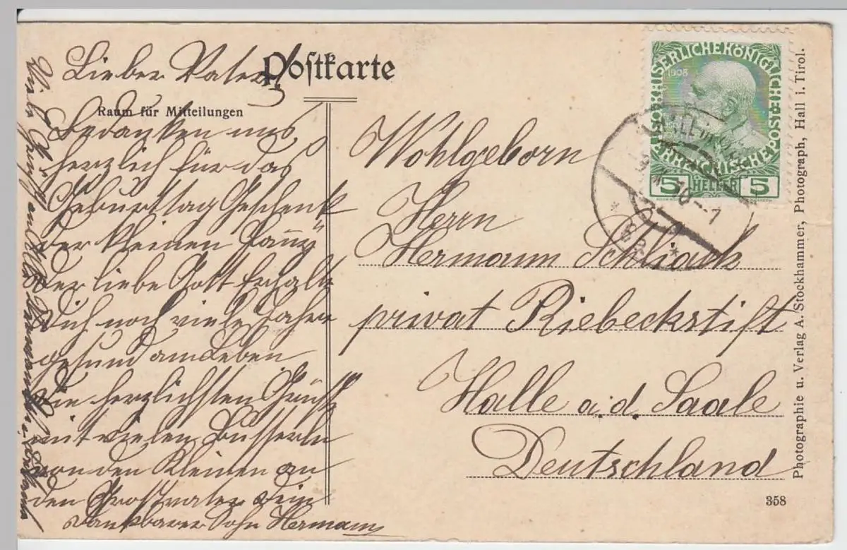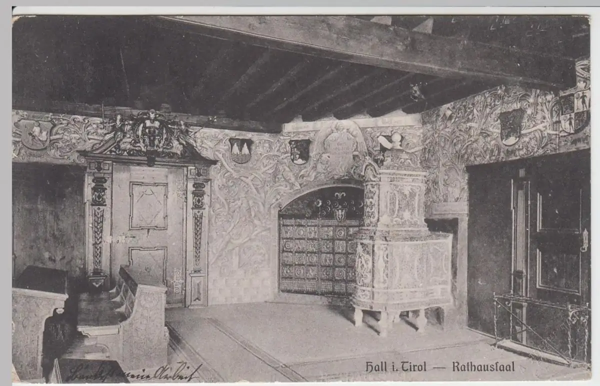 - (53513) Ansichtskarte, postcard, PPC - Hall in Tirol, Rathaussaal, 1910