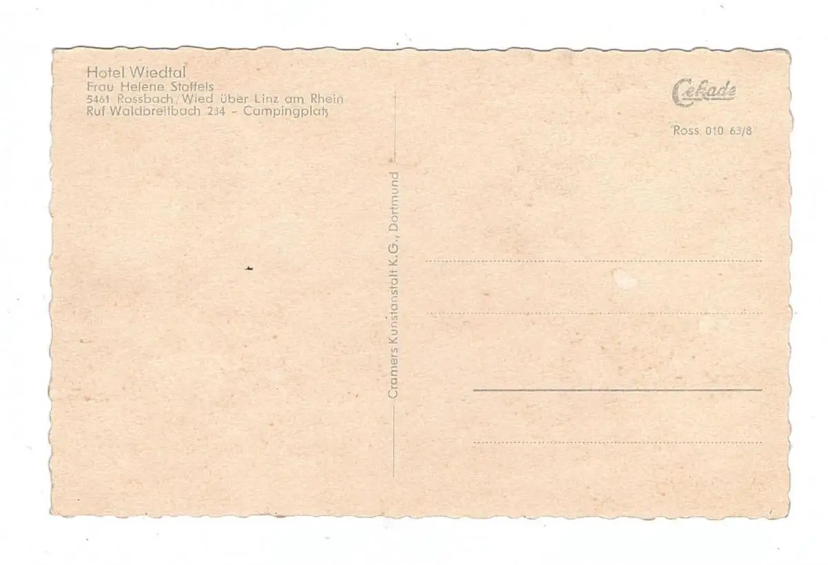 5455 RENGSDORF - ROSSBACH, Wiedtal, Hotel Wiedtal, 1963