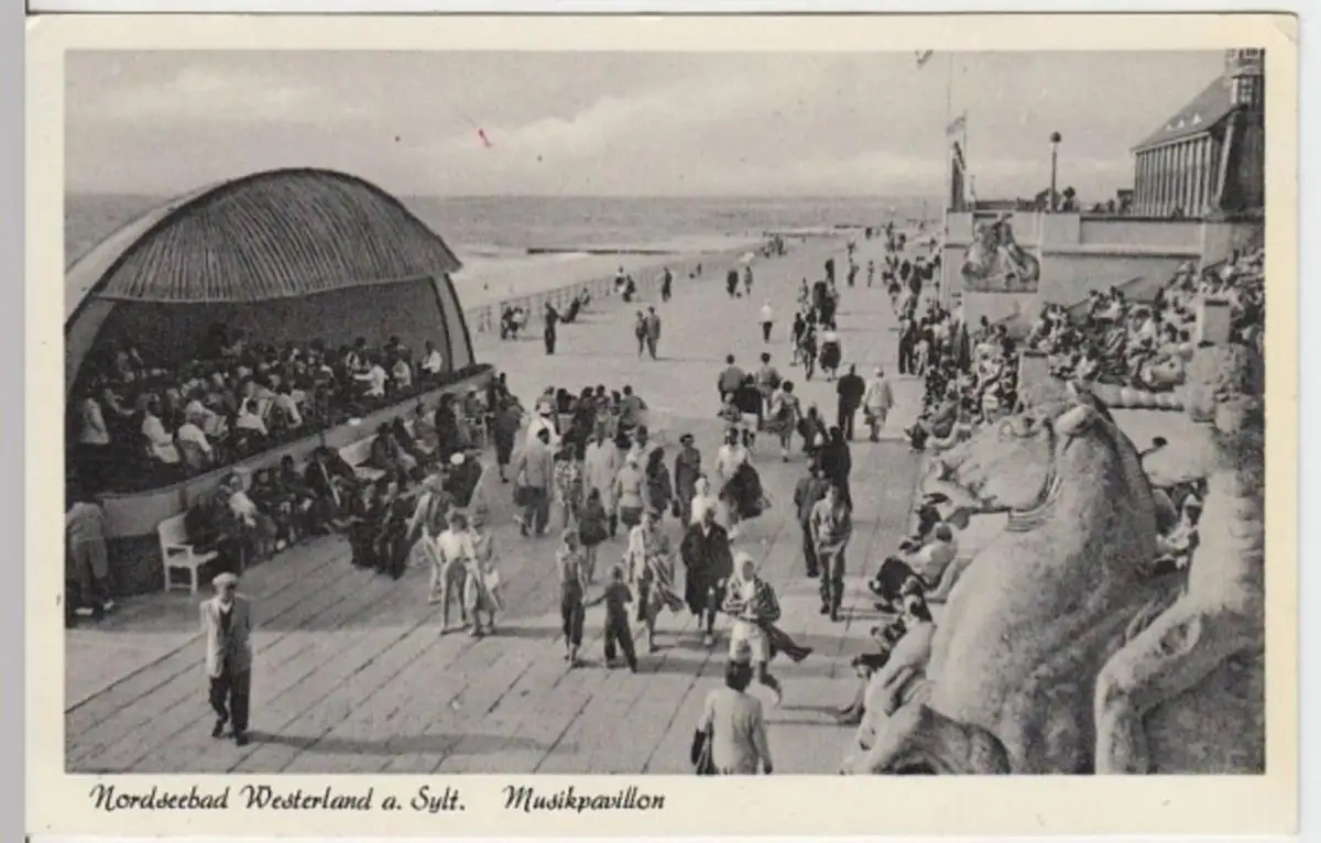 - (5493) Ansichtskarte, postcard, PPC - Westerland, Sylt, Musikpavillon, Promenade