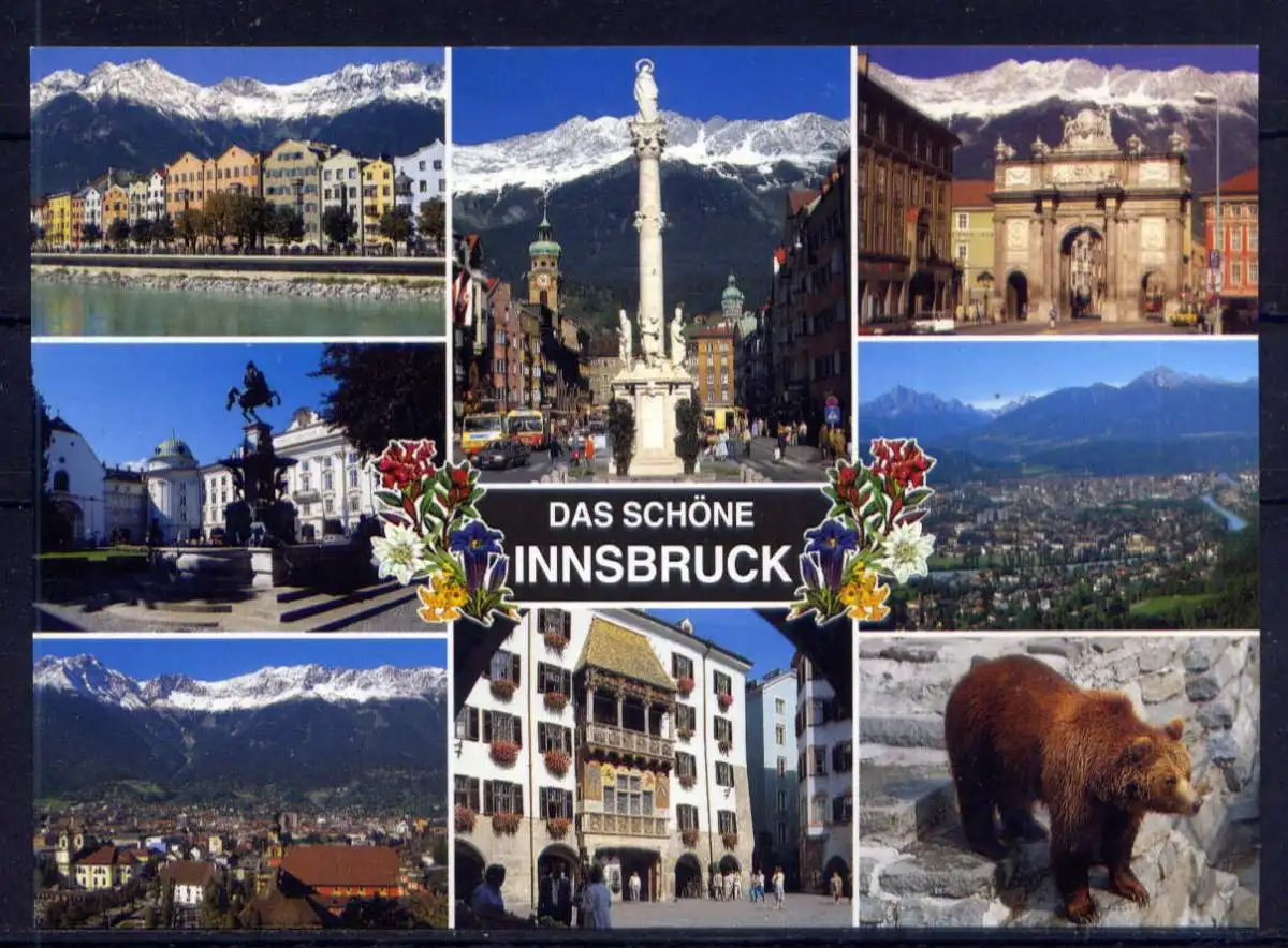 (5567) Innsbruck - unbeschrieben / Österreich Rathaus Promenade Blumen Bär
