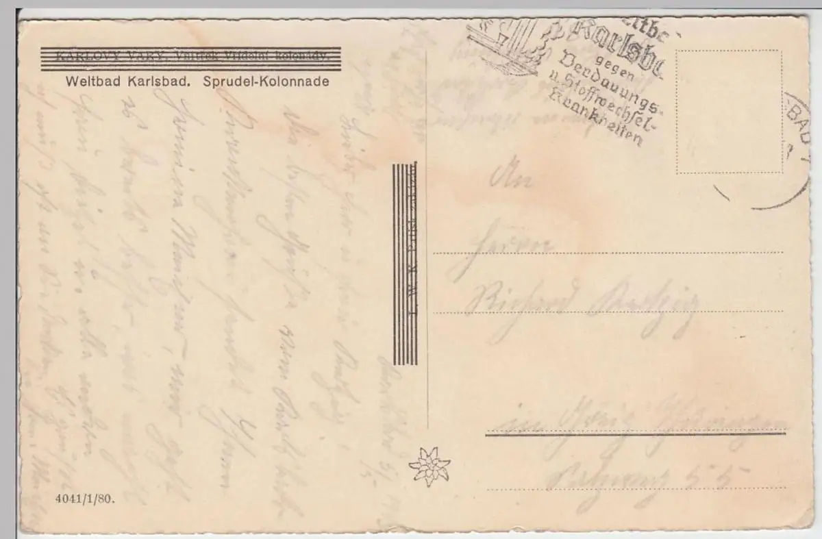 - (56117) Ansichtskarte, postcard, PPC - Karlsbad, Karlovy Vary, Sprudel-Kolonnade 1943