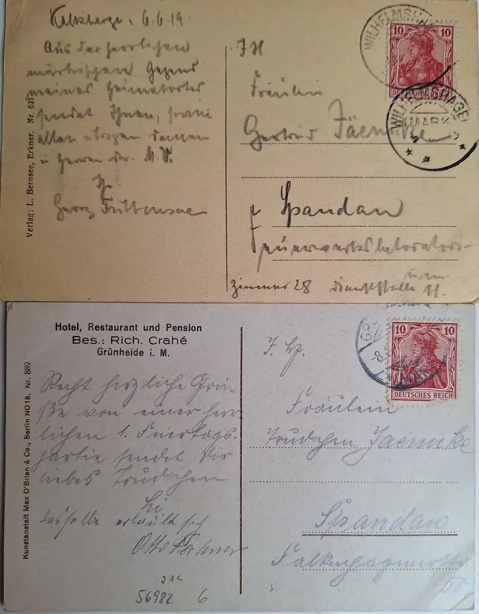 56982 2 Ansichtskarte Grünheide i.M. Löcknitz Partie 1919