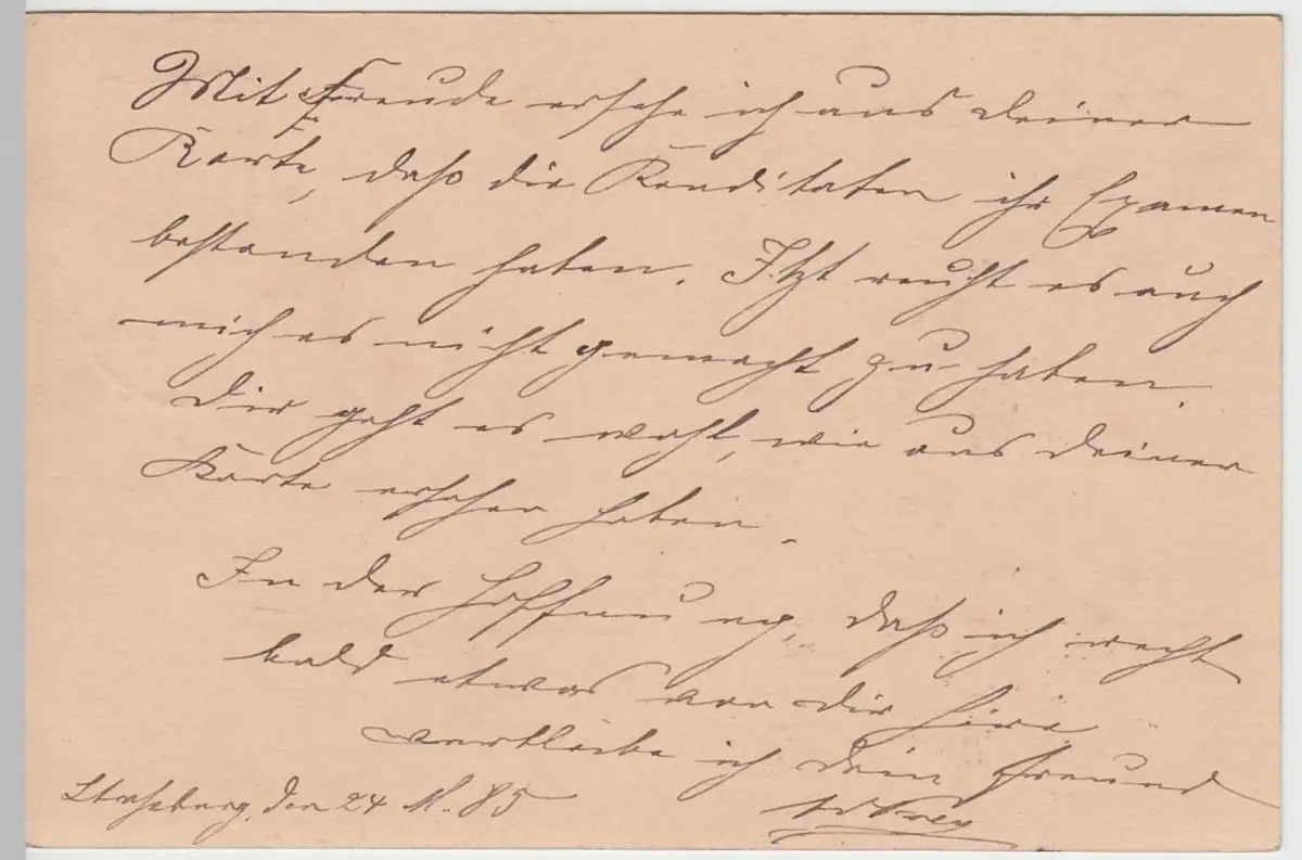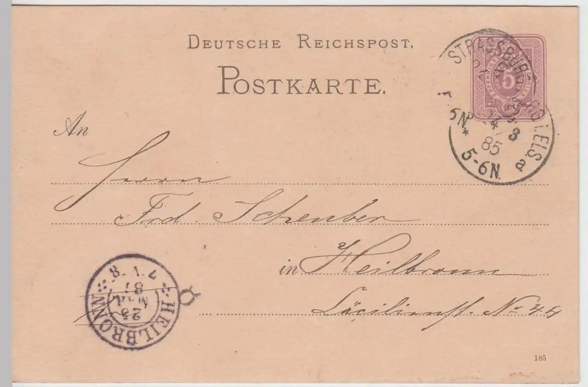 (58014) Ganzsache, Deutsche Reichspost, Stempel Strassburg 1885