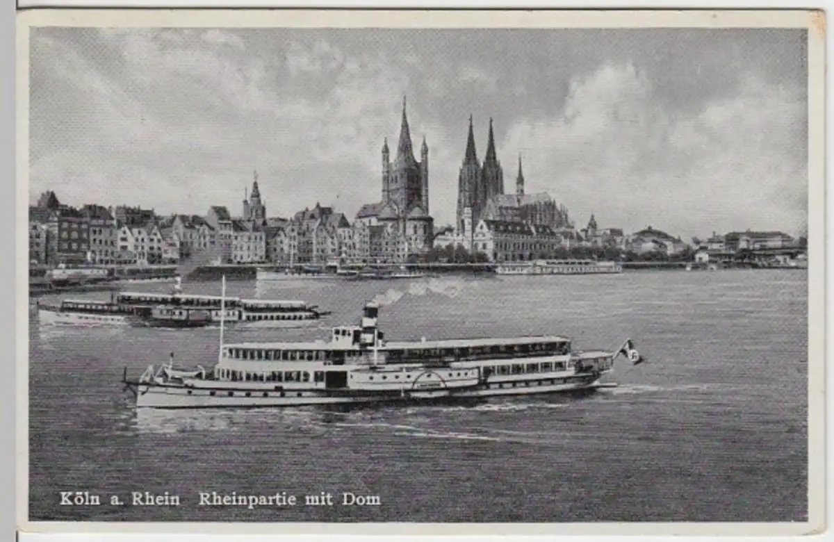 - (5840) Ansichtskarte, postcard, PPC - Köln, Rheinpartie mit Dom 1940