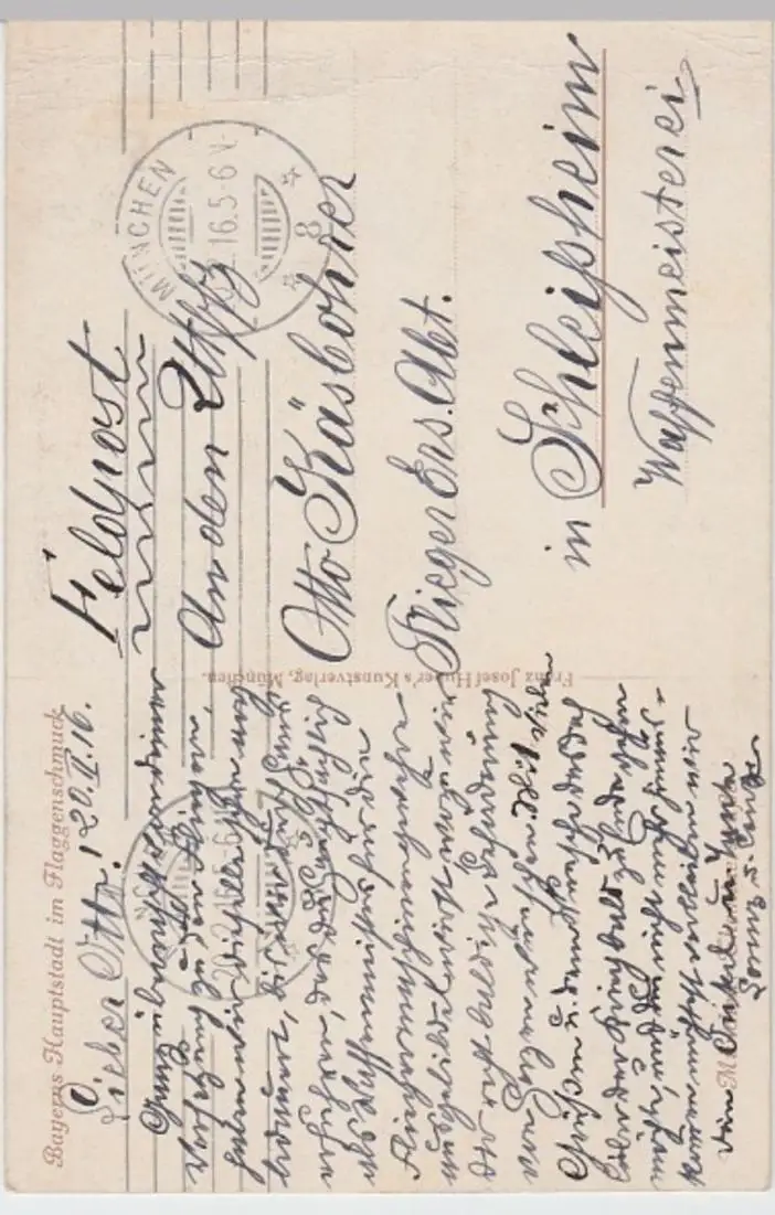 (5971) AK München, Theatinerstraße im Flaggenschmuck, Feldpost 1916
