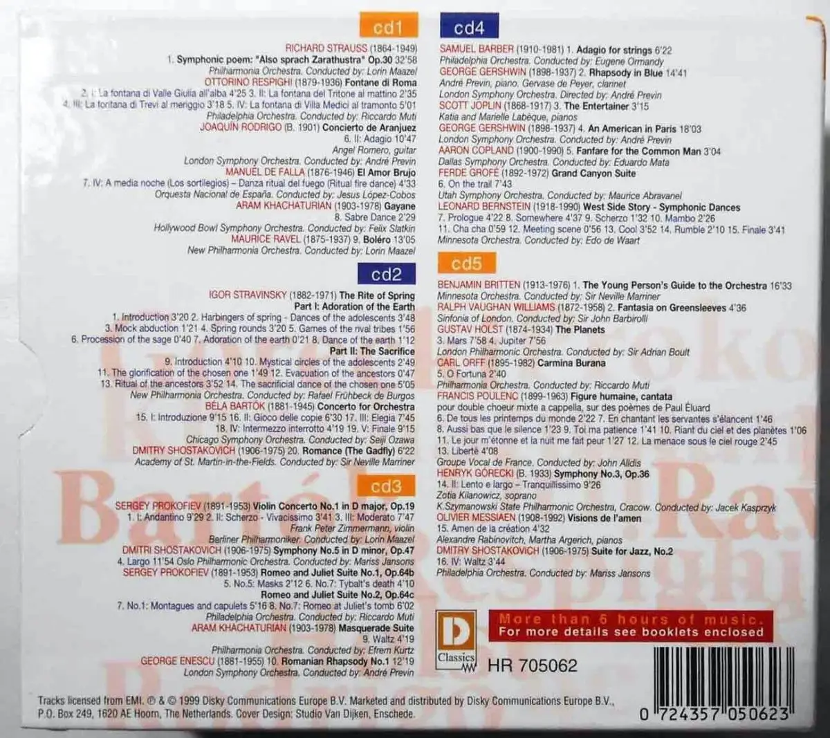 Komponisten des 20 Jahrhunderts präsentiert von Interpreten wie u.a.: Mazel, Muti, Marriner, Kurtz, Jansons, Previn, Ormandy, Ozawa, Barbirolli, Boult, Argerich, de Waart